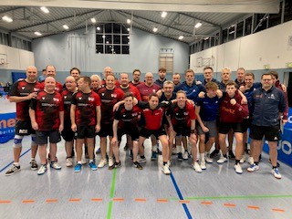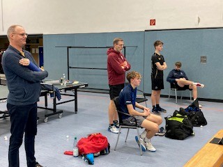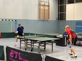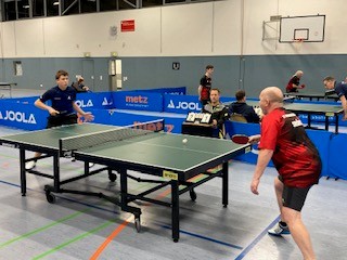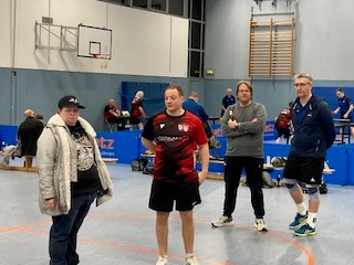 Der Spielplan des TT-Bezirks Südwestfalen muss ein Eichhörnchen sein! Für Freitag, den 28.11.2025, waren gleichzeitig vier Spiele Burbacher Mannschaften gegen alle vier maximal möglichen Rinsdorfer Teams gleichzeitig angesetzt. Die Gelegenheit, ein Mega-Ebent daraus zu machen. Unser Neuzugang Leo Focht, vorher bei der Spvg. Rinsdorf aktiv, setzte sich mit seinem Kumpel Jens Büdenbender in Verbindung und die beiden organisierten einen tollen TT-Abend in Burbach. Einmal wurde noch das Heimrecht getauscht, ein Spiel wurde noch verlegt. So konnten an diesem Abend schlussendlich immerhin drei Lokal-Duelle der besonderen Art in Burbach gleichzeitig ausgetragen werden.