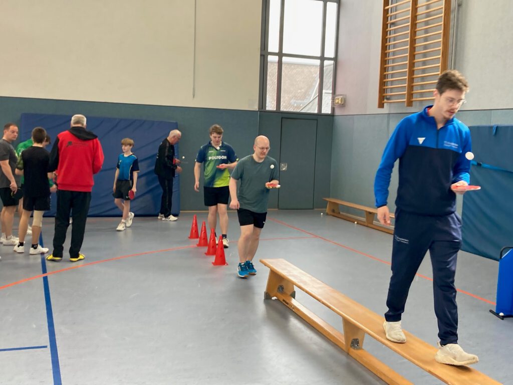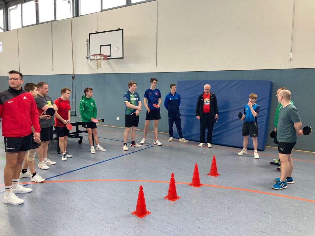 Zwei volle Tage „unterrichtete“ der neue WTTV-Verbandstrainer Johannes Linnenkohl die 12 Lehrgangsteilnehmer. Mit dabei vom VfB Burbach auch der erst/noch 15-jährige Jordi Prellwitz. Überhaupt war die Alterspanne der Teilnehmer überragend – von ca. 12 bis ca. 80 Jahre waren alle Generationen vertreten – das gibt es wohl auch nur im Tischtennis in dieser Form. Hier einige bildliche Eindrücke vom Lehrgang: